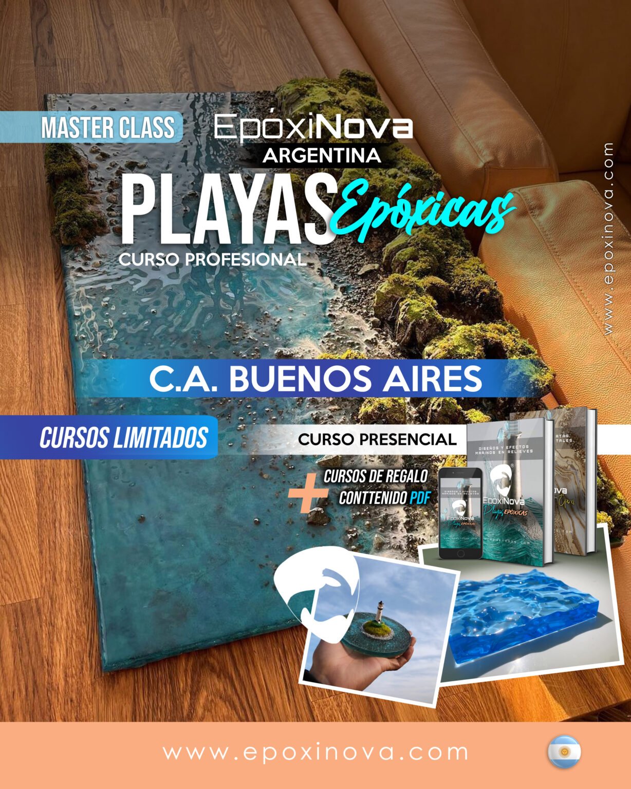 Descubrí cómo transformar resina, yeso y texturas en esculturas marinas llenas de vida en este taller presencial único. Ideal para artesanos, artistas, decoradores y creativos visuales, aprenderás paso a paso a crear tu propia playa epóxica en 3D, con técnicas de resina epoxi y UV, molduras, alto relieve, efectos de olas y diseño de paisajes marinos. No necesitás experiencia previa porque nosotros te la brindaremos, sólo se requiere tus ganas de crear algo diferente. Los cupos son limitados, trabajamos con materiales incluidos y te llevás tu obra terminada. Reservá tu lugar ahora y dejate llevar por el arte del mar.